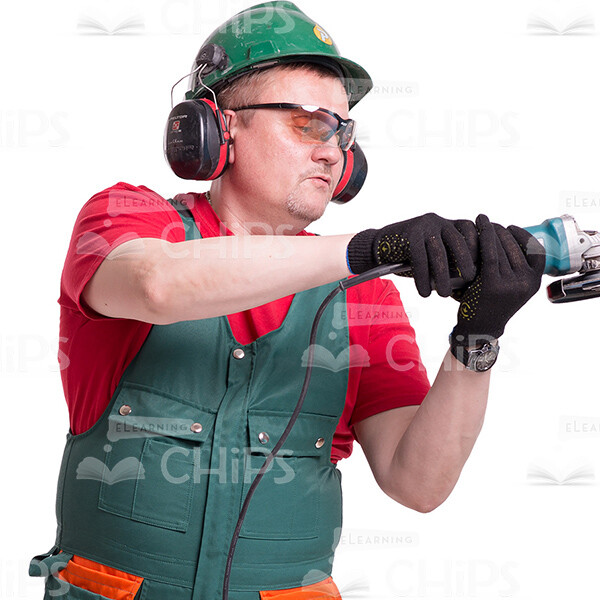 Cutout Picture Of Mid-Aged Man Working With Grinder
