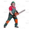 Cutout Photo of Middle-age Handyman Holding Chain Saw and Ready to Start Working
