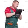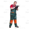 High-quality cutout image of a middle-aged man. He is a repairman. We have a full-length photo. He is standing the sideways. He has the black gloves and holding with both hands the drill. He is not looking at the camera. He is using the drill and concentrated on it. He is dressed in worker’s uniform, such as green overall and red T-shirt. We’ve collected lots of the same model’s photos with dozens of poses, gadgets and emotions, especially for e-learning course developers. They would be useful to illustrate a skilled industrial employee during the work. Each image is represented in few sizes and is available with the transparent background. Feel free to browse our huge cutout people library and pick any picture(s) you need to create an amazing visual story.