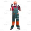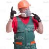 High-quality cutout image of a middle-aged man. He is a repairman. We have a full-length photo. He is standing with the full face. His both arms are bent at the elbow and he is gesticulating. He has the black gloves. He is wearing respirator and orange helmet. He is looking at the camera. He is dressed in worker’s uniform, such as green overall and red T-shirt. We’ve collected lots of the same model’s photos with dozens of poses, gadgets and emotions, especially for e-learning course developers. They would be useful to illustrate a skilled industrial employee during the work. Each image is represented in few sizes and is available with the transparent background. Feel free to browse our huge cutout people library and pick any picture(s) you need to create an amazing visual story.