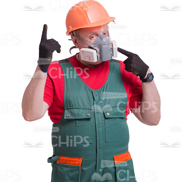 Gesticulating Middle-aged Repairman In The Respirator Cutout Picture