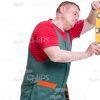 High-quality cutout image of a middle-aged man. He is a repairman. We have a full-length photo. He is standing profile view. He is not looking at the camera. He has raised both hands and holding the bubble level. He is looking at it. He is using it and checking with it. He is dressed in worker’s uniform, such as green overall and red T-shirt. We’ve collected lots of the same model’s photos with dozens of poses, gadgets and emotions, especially for e-learning course developers. They would be useful to illustrate a skilled industrial employee during the work. Each image is represented in few sizes and is available with the transparent background. Feel free to browse our huge cutout people library and pick any picture(s) you need to create an amazing visual story.