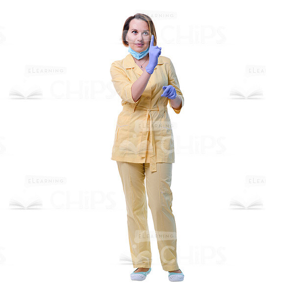 - Appearance: European, female, young woman, lady, girl, brown hair, semi long haircut, doctor, medical, health, professional, nurse, medicine, general, practitioner, physician, dentist, care, treatment, glad, cute, pretty, beautiful, handsome, nice, attractive, good-looking, pointing, have an idea gesture, happy, pleased, slightly smiling, gesticulating;