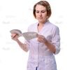 - Appearance: European, female, young woman, lady, girl, brown hair, semi long haircut, doctor, medical, health, professional, medicine, practitioner, physician, surgeon, care, treatment, attractive, nice, pretty, cute, handsome, beautiful, good-looking, with medical card, with sickness record, focused, reading, calm, confident, holding, working, half-turned;