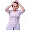 - Appearance: European, female, young woman, lady, girl, brown hair, semi long haircut, doctor, medical, health, professional, medicine, practitioner, physician, surgeon, care, treatment, attractive, nice, pretty, cute, handsome, beautiful, good-looking, throwing hands up, hands on head, worried, troubled, distressed, upset, discouraged;