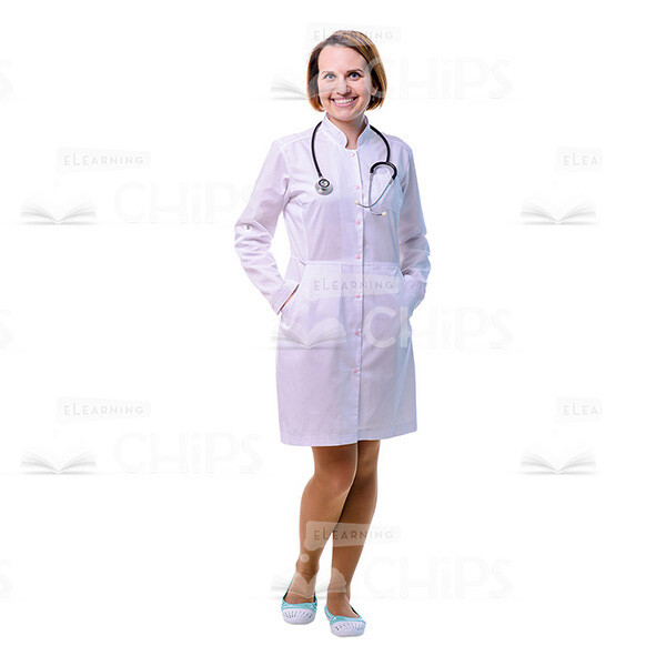Cutout Picture Of Cheerful Physician Holds Hands In Pockets