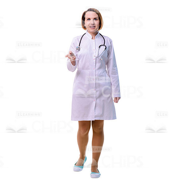 Full-length cutout image of a pretty therapist standing upright while gesticulating with her right hand. Looks like that she is explaining something. The cut out photo is available in several various sizes to fit the requirements of each customer. It can be used in web and print related projects such as elearning courses, presentations, promotions, etc. Our huge cutout people photo library contains a large number of high-quality pictures taken by professional photographer. Feel free to pick any item(s) you need to create an eye-catching project.