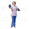 Handsome Female Doctor Cutout Photo Pack. The set is composed of 80 high-quality images taken by a professional photographer. It illustrates an experienced female surgeon dressed in modern medical uniform. Nice woman is imitating dozens of poses and emotions which may be useful to illustrate the surgeon, traumatologist or another clinician during the execution of job duties.