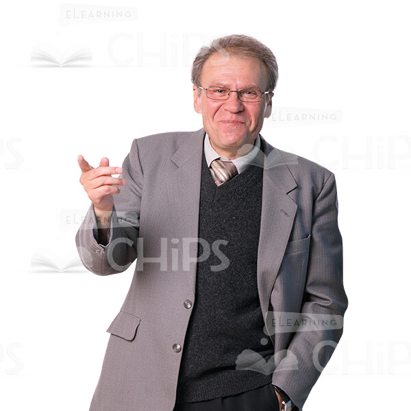 This charming cutout character simulates different positions and emotions that will definitely be useful for the e-course development. Due to his facial expressions Pavel can be used in various learning situations: while showing or presenting educational material, demonstrating some useful objects or pointing at something. Presentable appearance and classic wear allows to use him as a teacher, tutor, master, academic or professor.