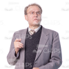 - Appearance: European, middle-aged man, attentive, focused, concentrated, presentable, hands in pockets, looking at camera;