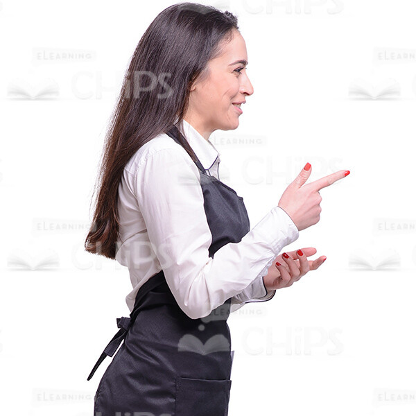 Young Waitress Pointing Forward Cutout Picture Profile View