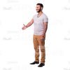 High-quality cutout image of a young latin man making a greeting gesture. Looks handsome and friendly. The character is shown in a half-turn pose. Dressed in casual clothes: beige pants and grey t-shirt. Image can be used in e-learning courses, advertisements and marketing projects. There are lots of photos of this model from multiple angles with various emotions and postures. All of them are presented with transparent backgrounds that help you to create the most effective e-course. Our cutout people images are available in a several formats. Feel free to choose the most suitable for your needs.