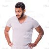 - Style: casual wear, beige pants, grey t-shirt, black shoes;