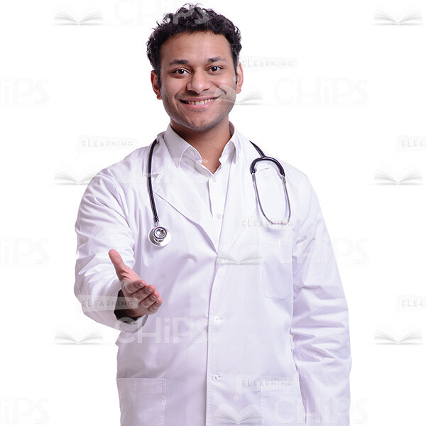 - Appearance: Latin American, male, young man, guy, dark hair, short haircut, doctor, medical, health, professional, medicine, practitioner, physician, surgeon, care, treatment, attractive, nice, good-looking, with stethoscope, with phonendoscope, offering hand, outstretching hand, handshake, gesture, gesturing, greeting;