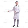 High-quality cutout photo of a good-looking young doctor holding presentation. He is pointing with both hands to the side while showing something. Dressed in a classic white medical gown. The cut out photo would be a perfect addition to any kind of web-design project. It’s available in few different formats such as M, L, and in the full resolution – XL. We’ve collected lots of the same model’s pictures taken by a professional photographer. Feel free to browse through our cutout people library and pick any character(s) you like.