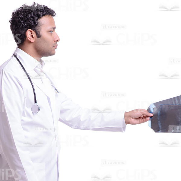 Cutout Image of Serious Doctor Giving Two X-rays to Someone
