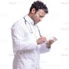 - Appearance: Latin American, male, young man, guy, dark hair, short haircut, doctor, medical, health, professional, medicine, practitioner, physician, surgeon, care, treatment, attractive, nice, charismatic, good-looking, positive, smiling, writing down, with medical card, health record, with stethoscope, with phonendoscope;