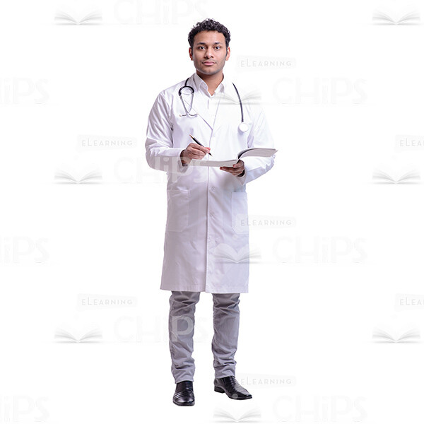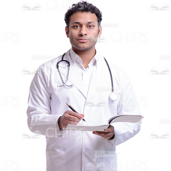 Cutout Image of Young Doctor Holding a Medical Card and Looking at the Camera