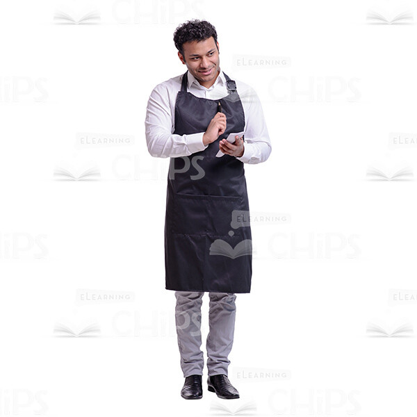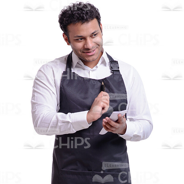High-quality cutout photo of a smiling waiter is standing in half-turned position. He is making notes. During conversation Sandro suggests some dishes to his clients, explains what is necessary, and clarifies the order. The waiter looks friendly and enthusiastic. The cutout image can be used to illustrate a handsome character in any kind of web and print related projects. The photo is available in few different sizes to fit the needs of each customer. The presence of a transparent background makes adding the image on a slide easy and convenient. Feel free to pick any of our people cut outs you need to create an amazing educational project.