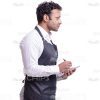 - Style: waiter uniform, black apron, white classic shirt, grey pants;