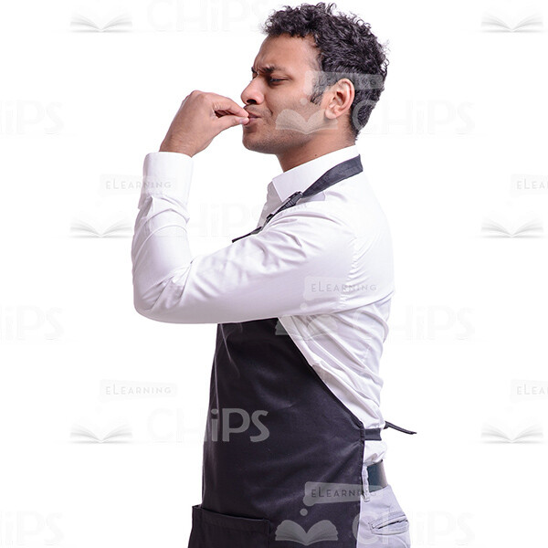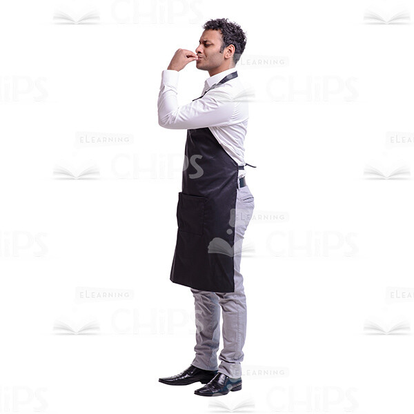 High-quality cutout photo of a young waiter is standing half-turned. Sandro is gesticulating. He likes something very much, and shows it with his hands. The waiter considers a dish to be very delicious. The cut out photo would be an excellent addition to any type of web or print related project. The availability of the transparent background allows you just to drop the image over a slide, without any further processing. It’s available in few formats such as M, L and XL, to fit the needs of any customer. Feel free to look through our huge cutout people library and pick any photo(s) you need.