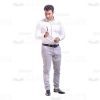 The high-quality cutout image of the young, attractive businessman. We have the full-length photo. He is standing full face. He is looking at the camera. He is holding the pen in his right hand and pointing with it to the camera. He is scowl. He is looking from under the forehead in to the camera. The man is dressed in the white shirt and grey jeans. He has black shoes and black belt. The man is Latin American and he has the dark hair with short haircut. This handsome cutout character provides you more opportunities to create an interesting visual story.