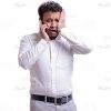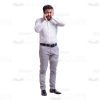 The high-quality cutout image of the young, attractive businessman. We have the full-length photo. He is standing full face. He is looking down. He is using his handy. He is looking upset and astonished. He is holding his handy with the right hand and with his left hand he is touching his face. The man is dressed in the white shirt and grey jeans. He has black shoes and black belt. The man is Latin American and he has the dark hair with short haircut. This handsome cutout character provides you more opportunities to create an interesting visual story.