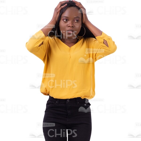 American Woman Stands In Shocked Arms On Head Cutout Image