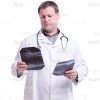 High-quality cutout image of a middle-aged man. He is a doctor. We have a full-length photo. He is standing full face. On his neck he has the stethoscope. His eyes directed down at the roentgens. He has two roentgens and holding one in each hand. He is looking serious. The man is dressed in the white the doctor’s smock. Under his doctor’s smock he has gray shirt and black pants and on his feet he has the black shoes. Man has dark hair. This handsome cutout character provides you more opportunities to create an interesting visual story.