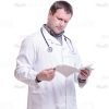 Cutout Photo of Focused Doctor Reading in the Health Card