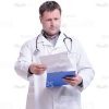 High-quality cutout image of middle-aged doctor is standing upright and holding a folder in his hands. Valentin is looking through the papers with the interest. Now he is turning piece of paper. The doctor is focused and attentive. The cutout image can be used to illustrate a handsome character in any kind of web and print related projects. The photo is available in few different sizes to fit the needs of each customer. The presence of a transparent background makes adding the image on a slide easy and convenient. Feel free to pick any of our people cut outs you need to create an amazing educational project.