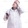 High-quality cutout image of a middle-aged man. He is a doctor. We have a full-length photo. He is standing full face. On his neck he has the stethoscope. His eyes are not directed at the camera. He is looking up. He has his handy in the right hand. He is upset. He is covering with his left hand his forehead. The man is dressed in the white the doctor’s smock. Under his doctor’s smock he has gray shirt and black pants and on his feet he has the black shoes. Man has dark hair. This handsome cutout character provides you more opportunities to create an interesting visual story.