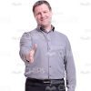 High-quality cutout image of a middle-aged man. We have a full-length photo. He is standing full face with outstretched for greeting right hand. His eyes are directed at the camera. He is friendly smiling. The man is dressed in the gray shirt and black pants and on his feet he has the black shoes. Man has dark hair. This handsome cutout character provides you more opportunities to create an interesting visual story.