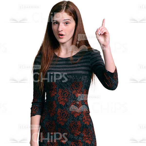 High-quality cutout picture of a pretty young woman pointing up with a left hand. Looks like that she’s got an idea. Wearing a long casual sweater dress. The photo might be useful for any kind of web and print related project (e-learning course, presentation, marketing, etc.). Availability of the transparent background allows just to drop it into the project slide, without the need for further processing. Every cutout people image is presented in four sizes: S, M, L and XL. Feel free to browse through our huge cut out photo library and pick any item(s) you really like.