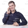 High-quality cutout image of a cheerful young man sitting behind the desk. He is talking on the mobile phone and smiling happily. His left arm is on the table. Dressed in dark blue shirt. This cutout image will perfectly illustrate working situations in your e-course. It is available in four different variations. All of them have transparent backgrounds that help you to create the most effective e-learning presentation. Just choose the right one and drop it into your e-learning project. You can also look through the other cutout people images and choose the most suitable for your project.