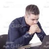 Focused Man Looks At Laptop Cutout Photo