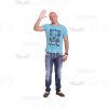 - Appearance: European, young man, bald, muscular, smiling, saying bye