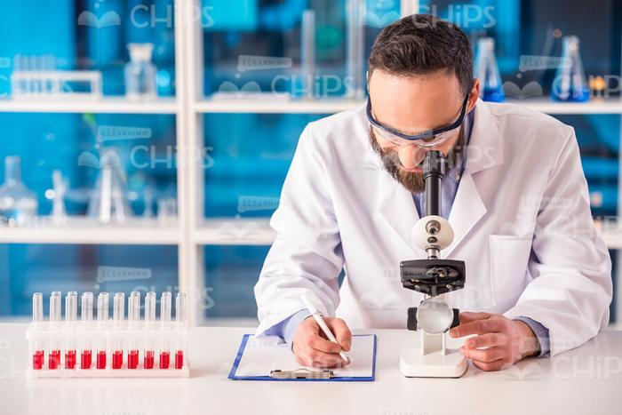 Researches Working At The Laboratory Stock Photo Pack. It consists of 70 high-quality stock images shooted by a professional photographer. According to the present story, a group of scientists is working under the medical researches. They are using different laboratory equipment such as microscopes, test tubes, flasks, etc. A young man with microscope and nice women with tubes are working at the sterile lab. This photo pack would be an excellent choice for creating your own e-learning courses, presentations and training materials.