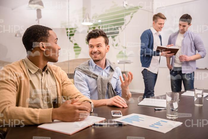 Handsome Young People At Training Session Stock Photo Pack. It consists of 91 high-quality stock images shooted by a professional photographer. The photos in the package illustrate a group of young people with different poses and emotions. They are involved in a training process. These photos would become a great helper for creating web-design projects such as e-learning courses and marketing messages.