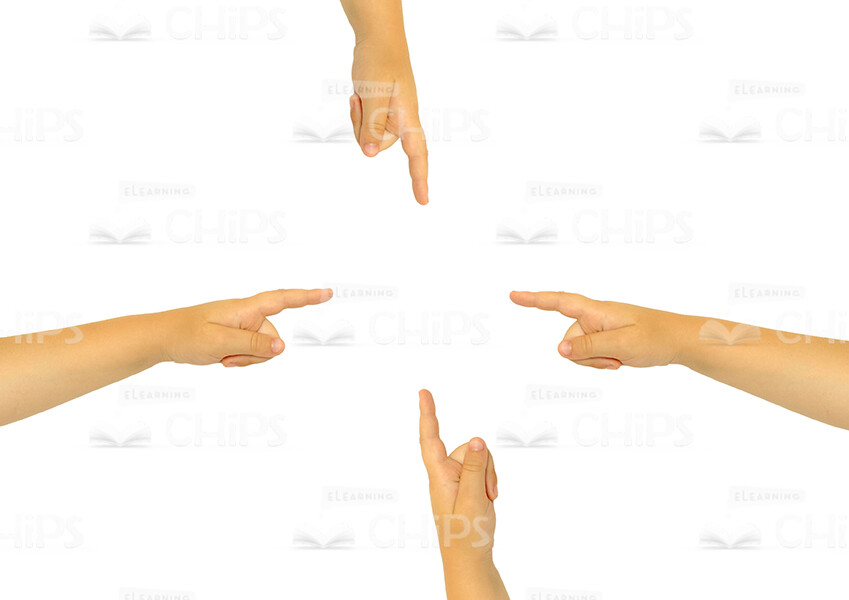 High-resolution stock photo shows four hands which points at it’s central part. Isolated on white background. Excellent for using as catchy content for web-design projects. It would be a perfect illustration for those moments when you need to draw user’s attention on some details. The photo is available in high resolution and in few different formats. Feel free to pick this picture in any size that fully fits your needs. Our stock photos library will satisfy the requirements of both novice and professional elearning designers.