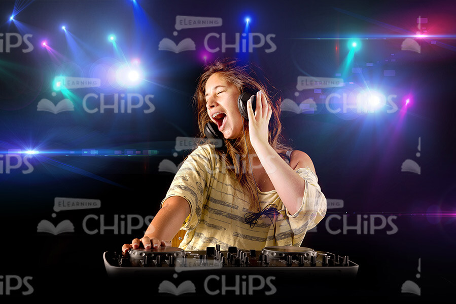 Pretty DJ Girl Stock Photo Pack. It consists of 18 high-quality stock photos of a handsome young girl performing at party. Looks like that she really likes what she does. This photo pack would be useful for creating e-learning projects, presentations, advertisings, etc.