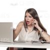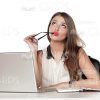 Businesswoman Working With Laptop Stock Photo Pack includes 56 high-quality images taken by a professional photographer. A presentable young business woman is sitting behind the table and working with her laptop. She imitates dozens of poses and facial expressions which are demanded among e-learning developers. It would become a great addition to any kind of web-design project such as e-learning course, presentation, marketing message, etc. All images are represented on the white background. Just choose the size of photos that meets your requirements and start to create an amazing e-course.
