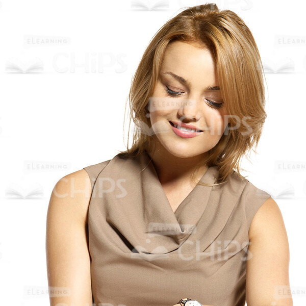 Cutout Photo Of Pretty Businesswoman With Digital Tablet Holding Presentation
