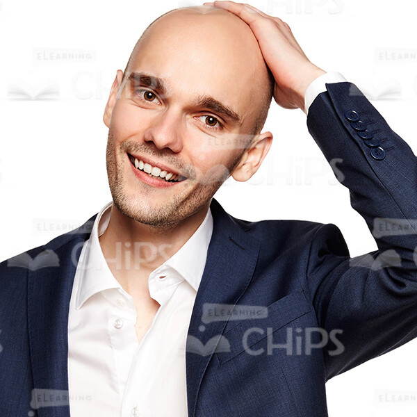 Cutout Photo Of Smiling Business Man Stroking His Shaved Head