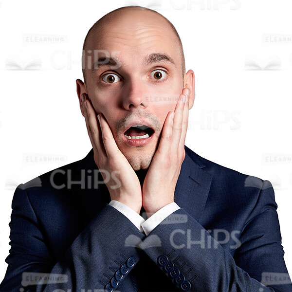 High-quality cutout picture of a bewildered businessman holding both hands on cheeks. It seems that he is surprised with something. This attractive cut out person’s portrait can be used to illustrate a business mentor, tutor or course narrator in any kind of e-learning project. The photo is available in few different sizes to fit the needs of each customer. The presence of a transparent background makes adding the image on a slide easy and convenient. Feel free to pick any of our people cut outs you need to create an amazing educational project.