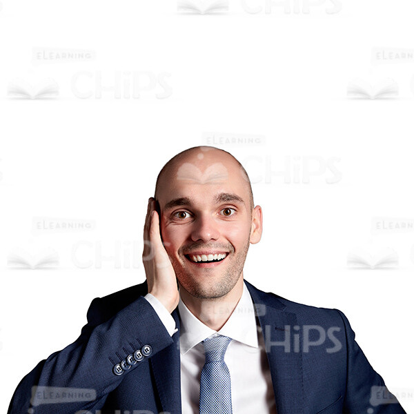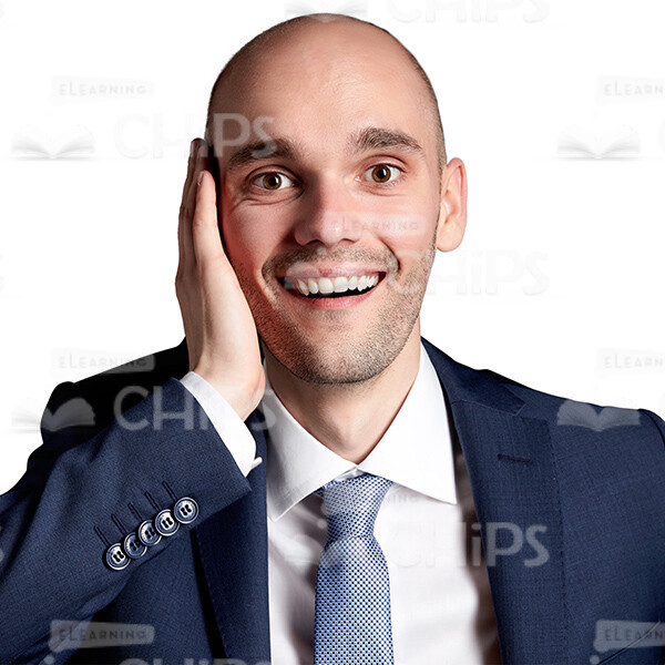 High-quality cutout picture of a satisfied businessman experiencing a feeling of a relief. He holds a right hand on a cheek while looks at the camera. This attractive cut out person’s portrait can be used to illustrate a business mentor, tutor or course narrator in any kind of e-learning project. The photo is available in few different sizes to fit the needs of each customer. The presence of a transparent background makes adding the image on a slide easy and convenient. Feel free to pick any of our people cut outs you need to create an amazing educational project.