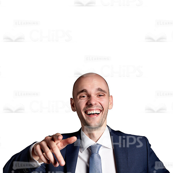 High-quality cutout picture of a laughing businessman pointing with a right hand. He looks happy and smiling. Dressed in a formal suit. This attractive cut out person’s portrait can be used to illustrate a business mentor, tutor or course narrator in any kind of e-learning project. The photo is available in few different sizes to fit the needs of each customer. The presence of a transparent background makes adding the image on a slide easy and convenient. Feel free to pick any of our people cut outs you need to create an amazing educational project.