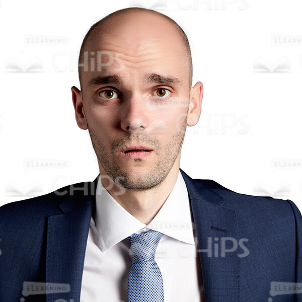 High-quality cutout photo of a puzzled businessman dressed in a formal suit. His eyes are focused on a camera. Looks like that he’s discouraged with something. The close-up portrait can be used to illustrate a teacher, business mentor or course narrator in any kind of educational project. It would be a great addition to e-learning courses, presentations, marketing messages, etc.