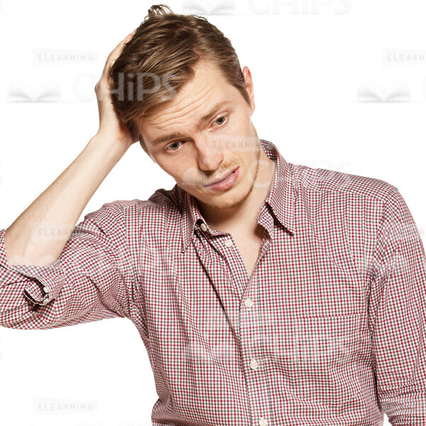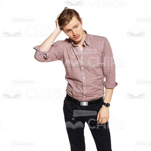 Cutout image of a young man holding his head with his right hand. The man looks very upset. Probably he was told sad news.