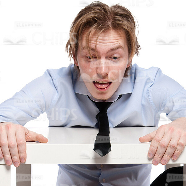 - Appearance: European, young man, handsome, business, office, formal wear, tired, lying, sitting on the floor, at the table, white;